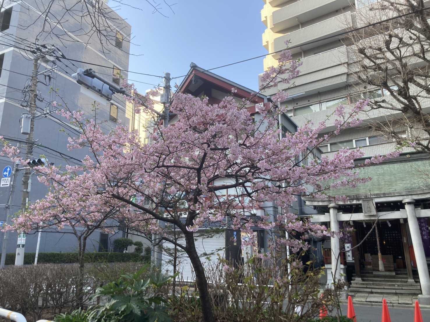 大井町駅の立合道路沿いにある河津桜が満開になりました!