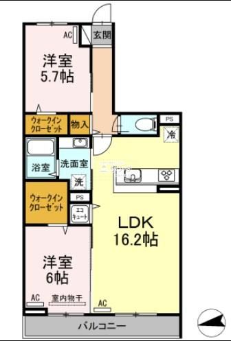 メゾン アムール 梅屋敷の2LDK賃貸アパート