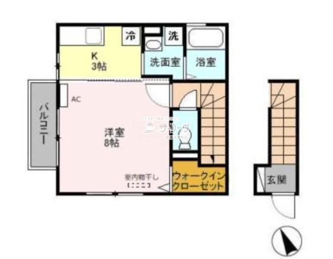 | 築年月 | 2008年9月 | 間取り | 1K( K3畳(2階)/洋室8畳(2階) ) | 専有面積 | 31.58m2 |